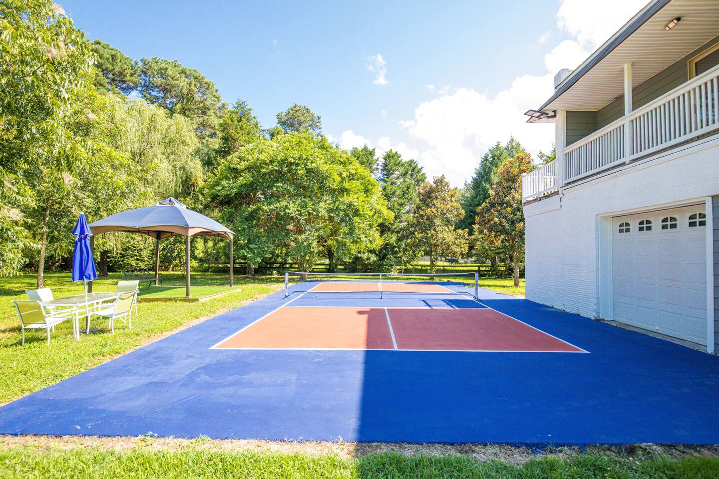 This beautiful property With nine bedrooms, there's ample space for family and guests to relax and unwind, each offering privacy and tranquility. The seven bathrooms boast modern fixtures and indulgent amenities, ensuring that every moment spent pampering yourself is pure bliss. But it's not just the interior that will leave you speechless. Step outside and discover your own private oasis, where endless hours of fun and relaxation await. Imagine soaking in the bubbling warmth of the hot tub as you watch the sun dip below the horizon, or challenging friends to a thrilling game of pickleball on your private court. Feel the thrill of victory as you sink a hole-in-one on the mini-golf course, or test your strategic skills on the frisbee golf course. For those who love the water, a floating dock beckons, offering easy access for boating, fishing, Kayaks or simply lounging in the sun. And when you're ready to unwind, gather around the giant chessboard for a friendly game under the stars, surrounded by the soothing sounds of nature. Don't miss your chance to be a part of this unparalleled waterfront retreat, where every day feels like a vacation and every moment is filled with possibility. Come experience luxury living at its finest—come home to paradise. Please note for guest count over 16 there will be an extra fee. Please contact the host with your guest count for the fee amount